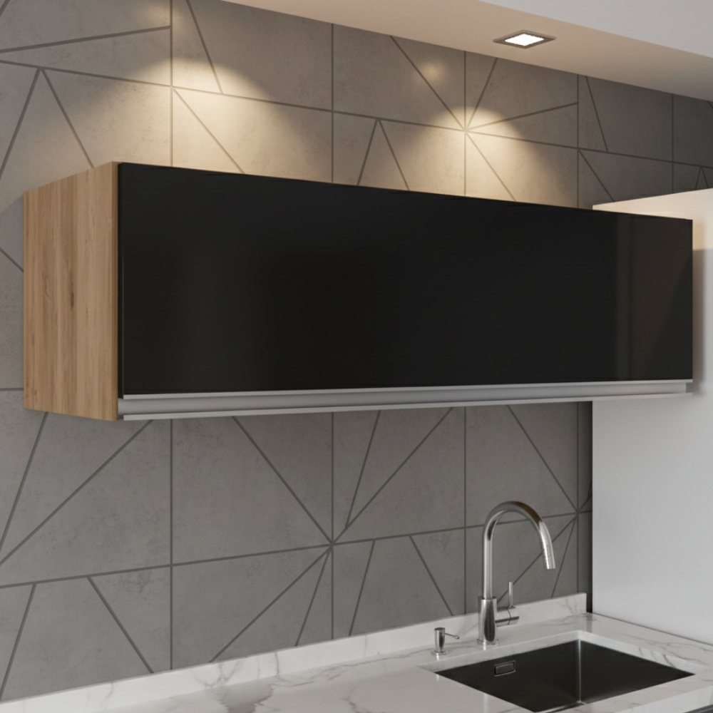 Armario Aereo 1 Porta Basculante 80 cm BP Fiorella Freijo Preto Eratto Moveis