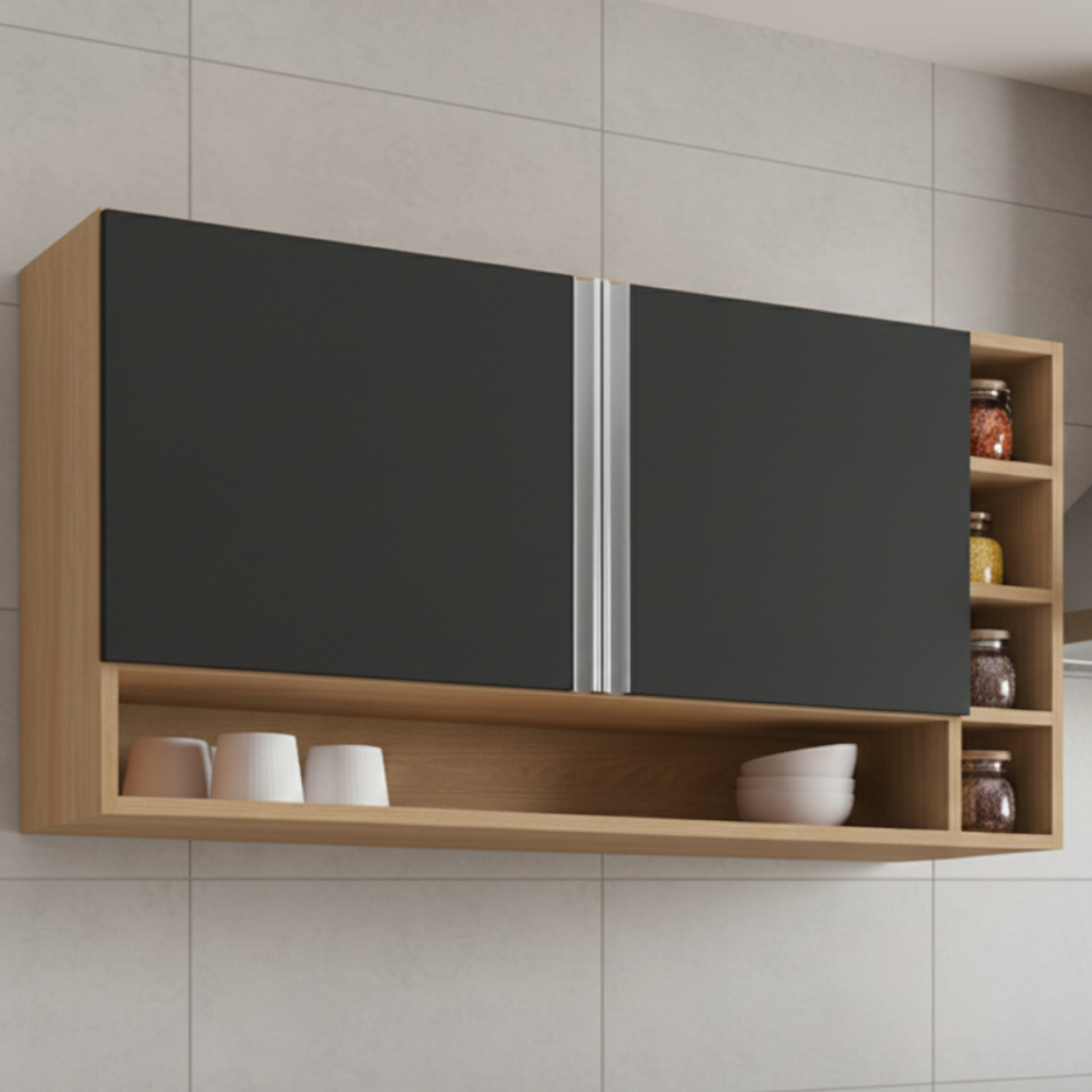 Armario Aereo 2 Portas 105 cm Vanessa Amendoa Preto REAJL Moveis