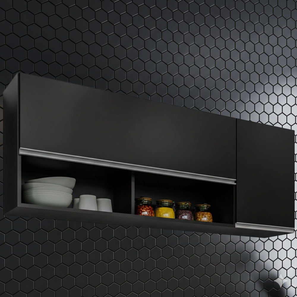 Armario Aereo 2 Portas BP Maya 150 cm Preto Eratto Moveis