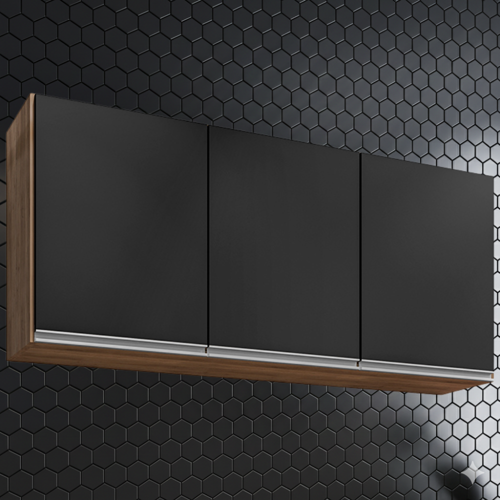 Armario Aereo 3 Portas BP Valentina 120 cm Freijo Preto Eratto Moveis