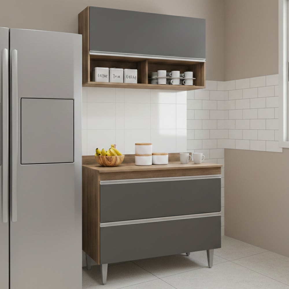 Armario Aereo E Balcao Com Tampo BP 100 cm Freijo Grafite Eratto Moveis