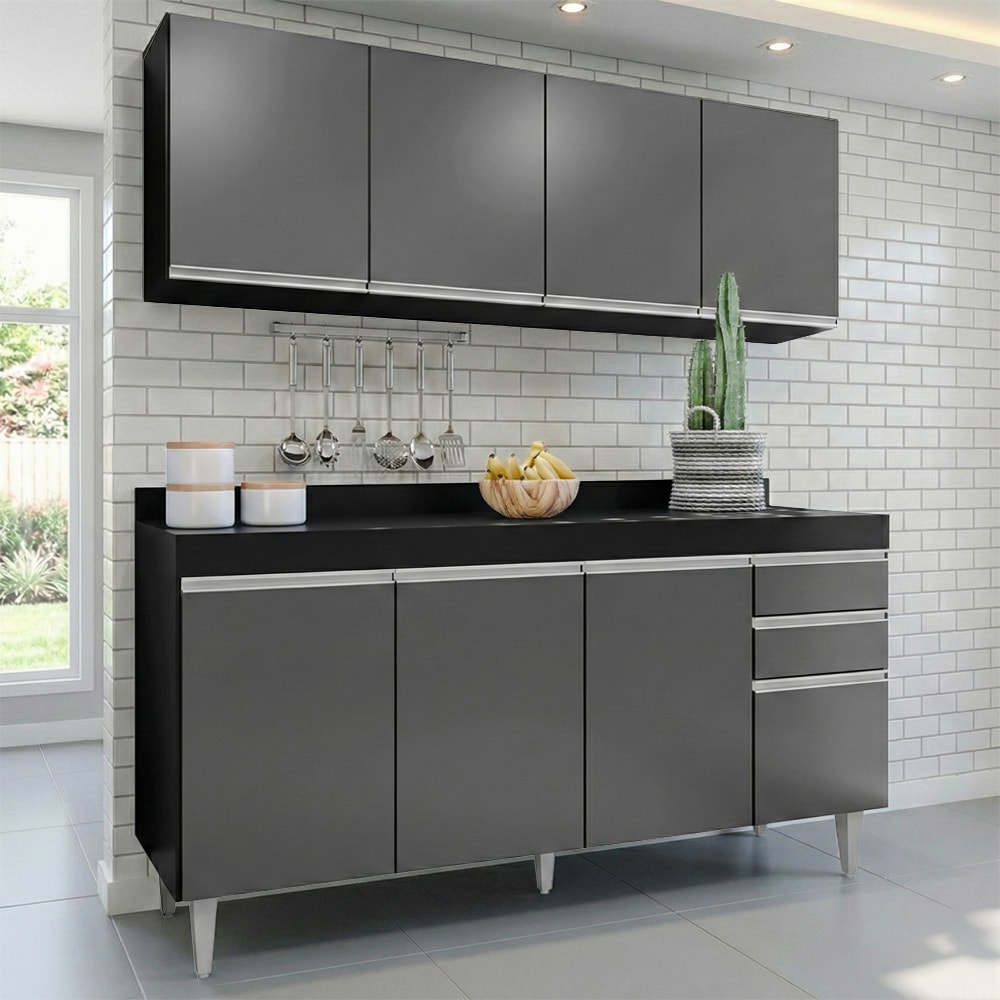 Armario Aereo E Balcao Com Tampo BP 160 cm Preto Grafite Eratto Moveis