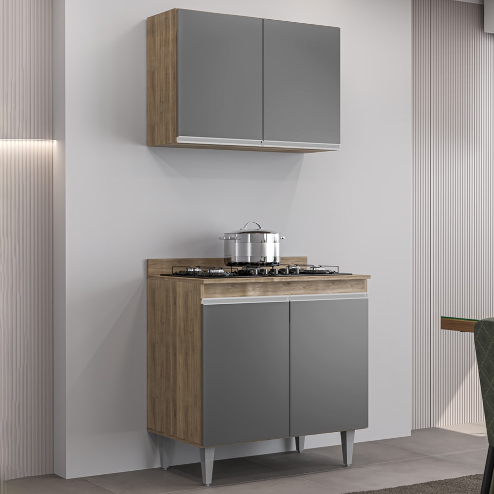 Armario Aereo E Balcao Com Tampo BP 80 cm Freijo Grafite Eratto Moveis