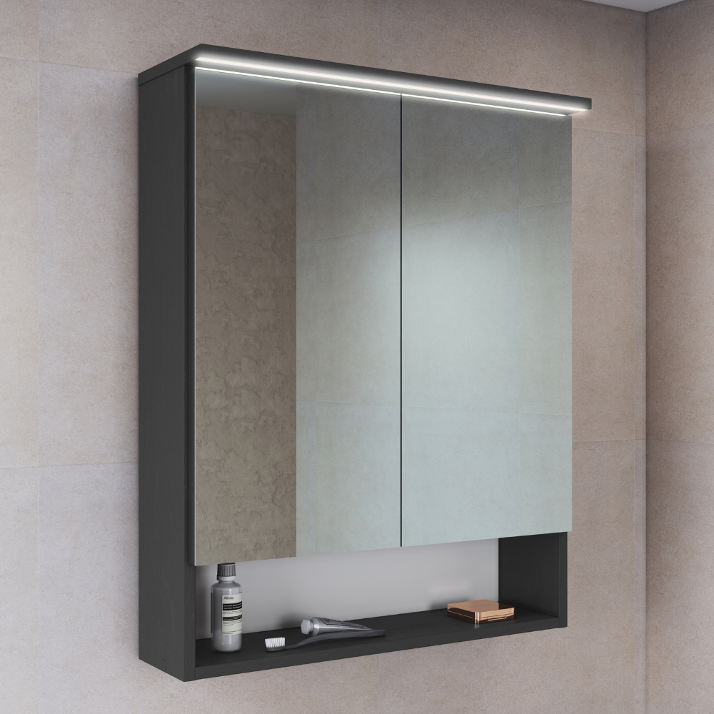 Armario Espelheira Com LED 60 cm 2 Portas Grafite PRODDY