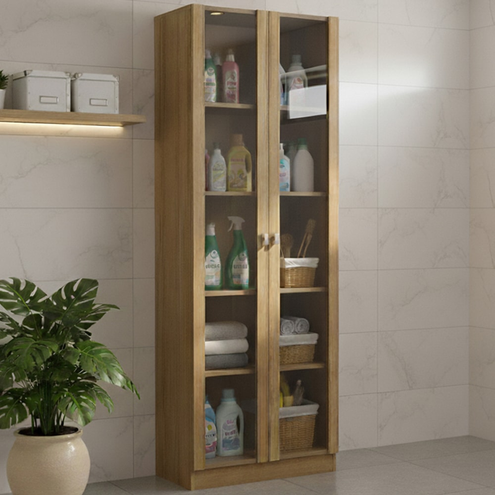 Armario Multiuso 2 Portas Vidro 171X60 cm AM3112 Amendoa Tecno Mobili