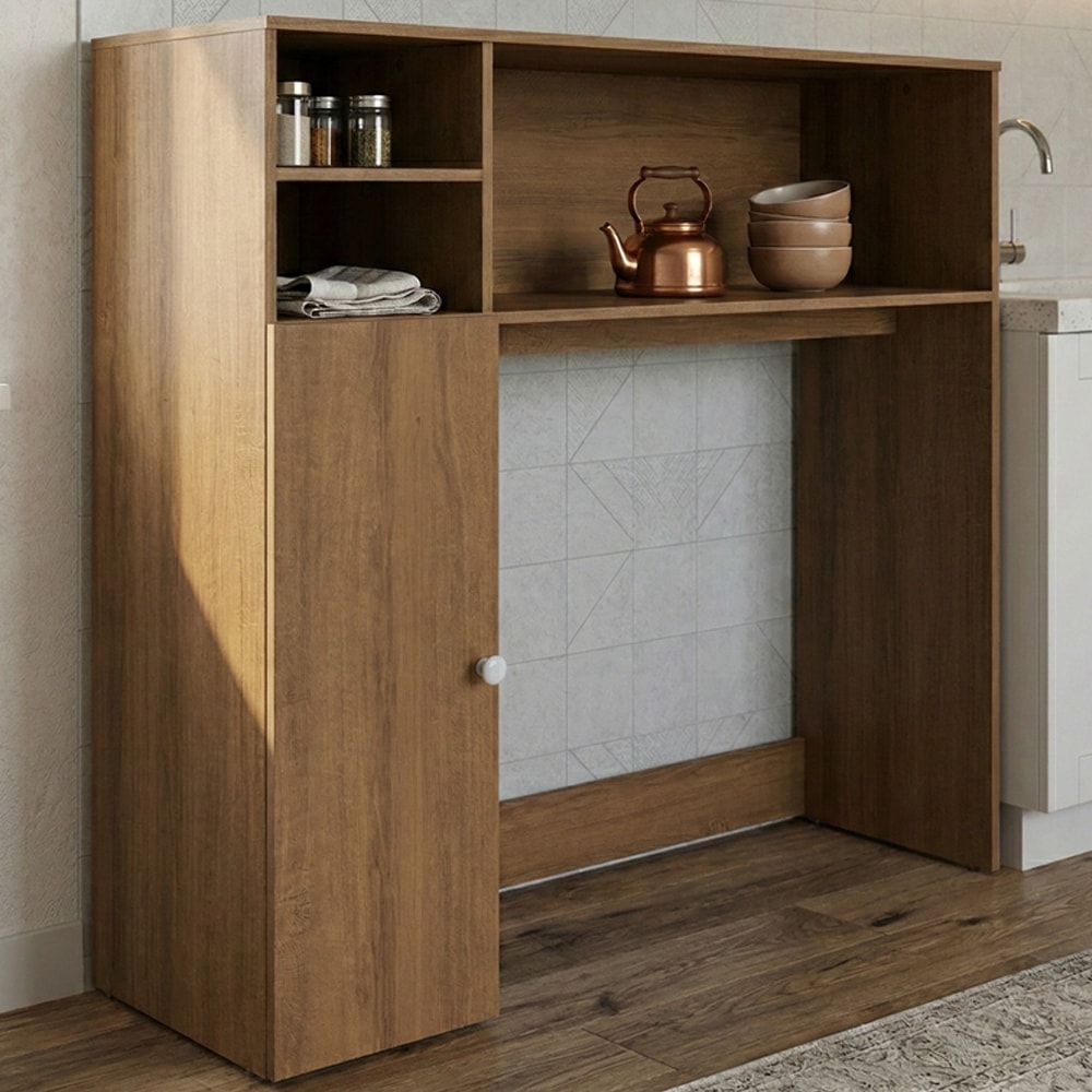 Armário Multiuso B52, combina modernidade e praticidade para complementar o seu ambiente, sendo uma excelente opção para cozinhas. Produzido com estrutura em MDP de 15 mm e acabamento UV fosco. Possui prateleiras laterais com capacidade de até 2 kg cada, nicho central suportando até 5 kg e tampo com capacidade para até 10 kg. Conta também com porta equipada com dobradiças metálicas, puxadores e amplo espaço interno, proporcionando mais organização no dia a dia. Este produto será entregue em 1 volume.