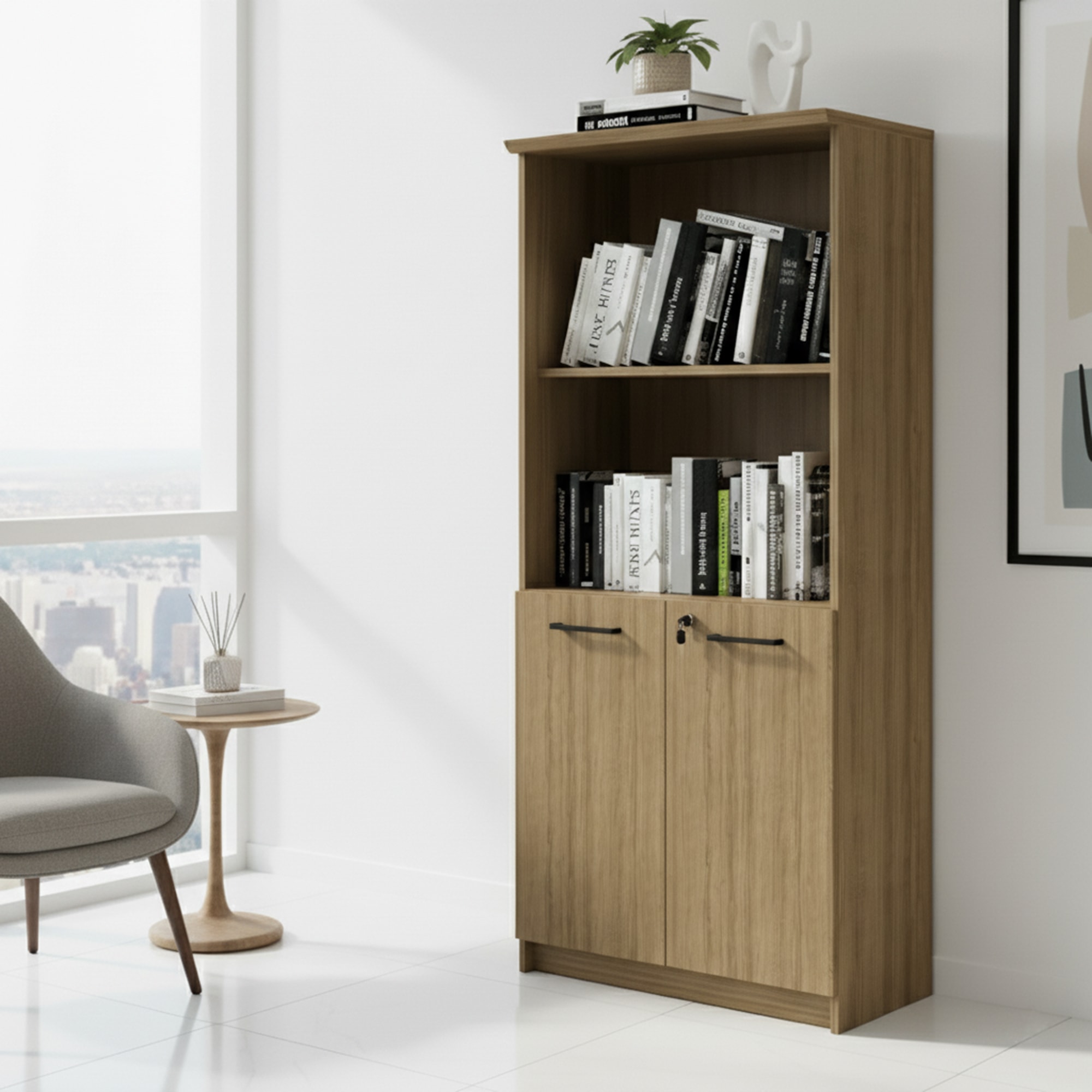 O Armário Escritório ME4199 une estilo e simplicidade para facilitar o dia dia, sendo produzido com estrutura em madeira MDP 15 mm, tampo com frente usinada de 25mm e revestimento em material BP, contando com duas portas (sendo uma delas com trava por chave), puxadores em metal, dobradiças metálicas, além de 3 prateleiras que suportam até 12 kg cada. além de amplo espaço interno que ajuda a manter o ambiente organizado. Este produto será entregue em 1 volume.
