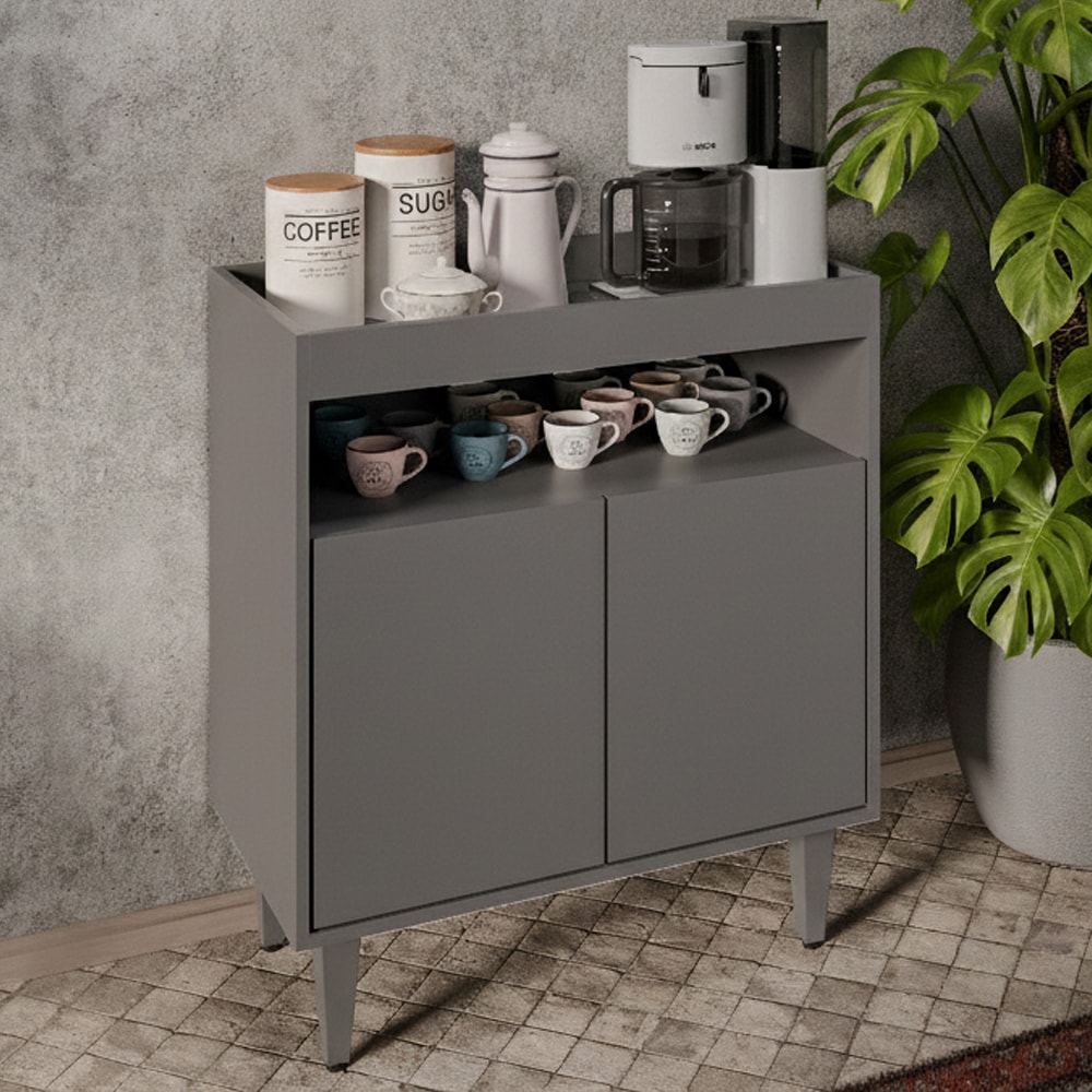 Balcao Aparador Multiuso 2 Portas BP Alice 71 cm Grafite Eratto Moveis