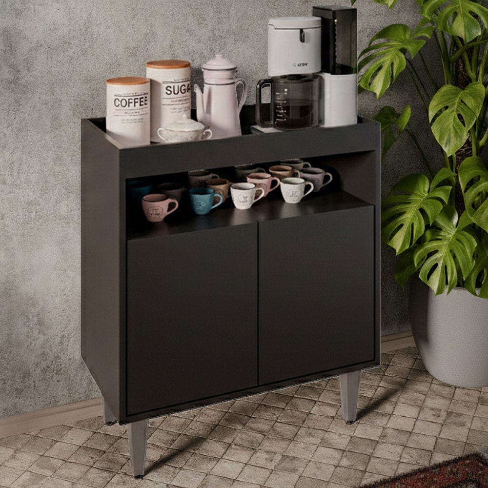 Balcão Aparador Alice, design que valoriza o ambiente no dia a dia! Estrutura em MDP 15 mm com acabamento BP. Possui portas com dobradiças metálicas e sistema de abertura passante, amplo espaço de armazenamento interno, nicho decorativo e tampo estilo bandeja, ideal para acomodar decorações ou utensílios diversos. Pés em plásticos (com regulagem) para maior estabilidade ao móvel. Produto será entregue em 01 volume.