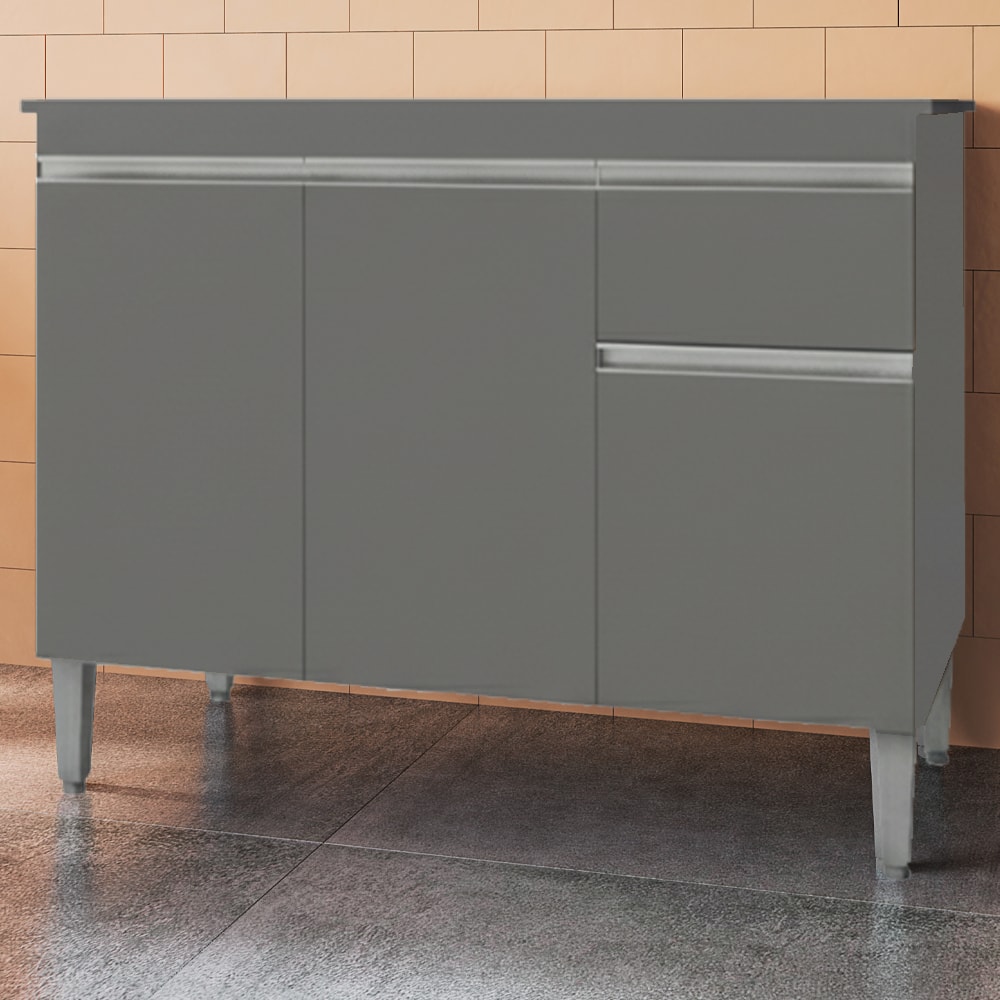 Balcão Com Tampo Tatiane, compacto e funcional, ideal para seu dia a dia! Estrutura em MDP (12/15mm - fundo 3 mm) com acabamento em pintura UV. Composto por portas e gavetas com dobradiças e corrediças metálicas, espaço amplo na prateleira, puxadores em alumínio e pés em plástico com regulagem. Produto será entregue em 02 volumes.
