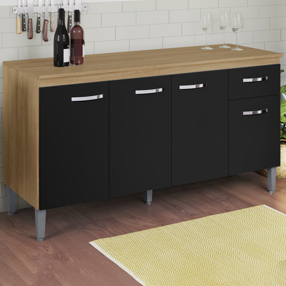 Balcao Com Tampo 150 cm Gabriela Amendoa Preto REAJL Moveis