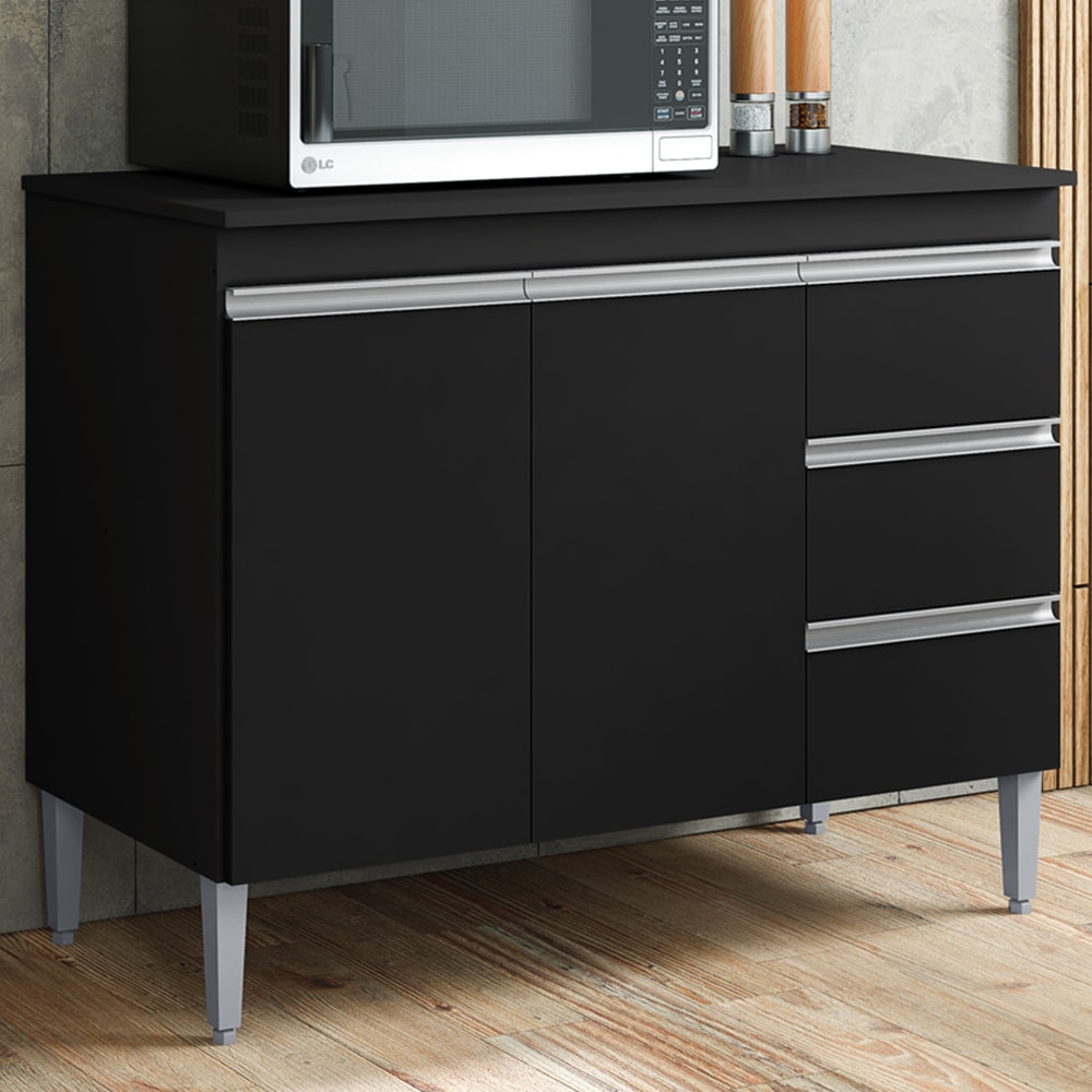 Balcao Com Tampo 2 PT 3 G 100 cm Andreia Preto REAJL Moveis
