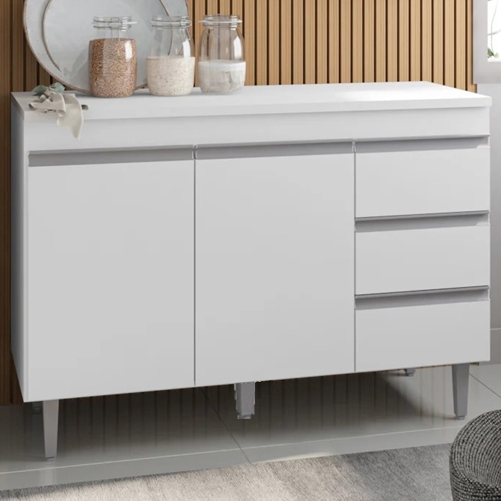 Balcao Com Tampo 2 PT 3 G 120 cm Andreia Branco REAJL Moveis