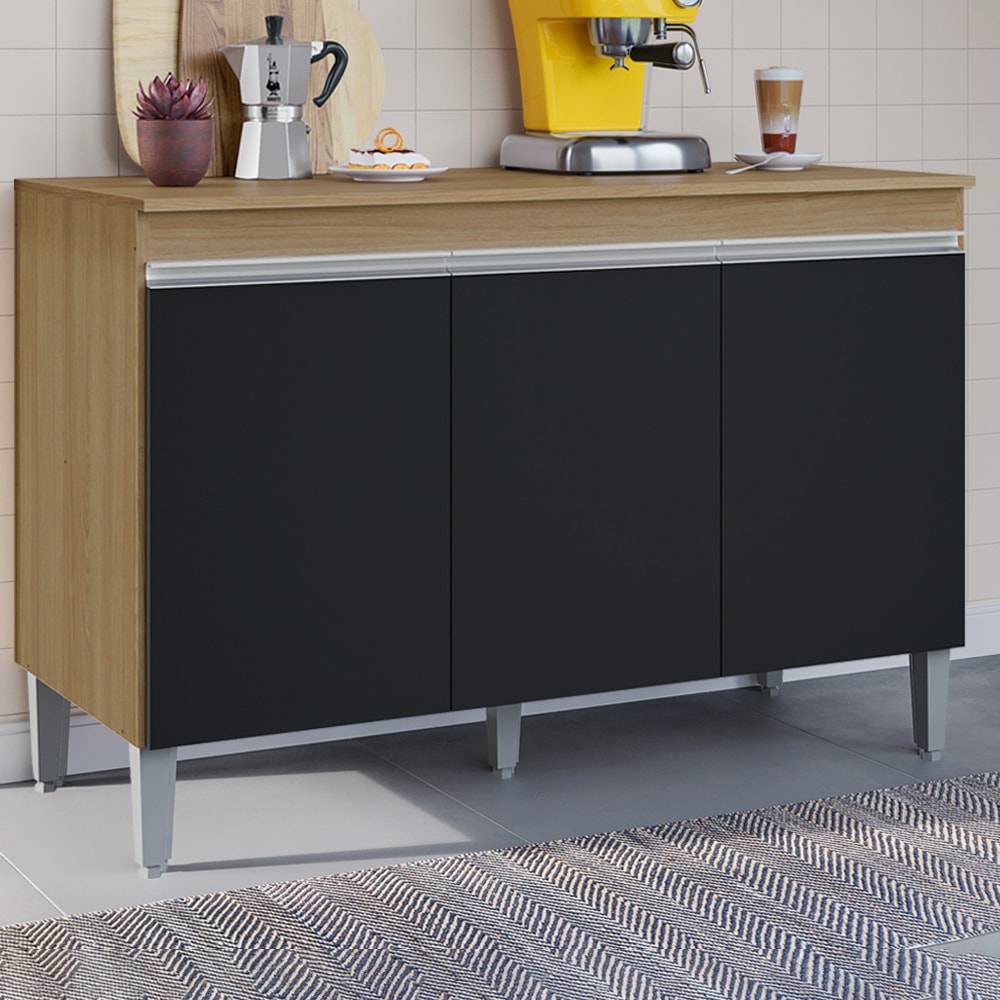 Balcao Com Tampo 3 Portas 120 cm Manu Amendoa Preto REAJL Moveis