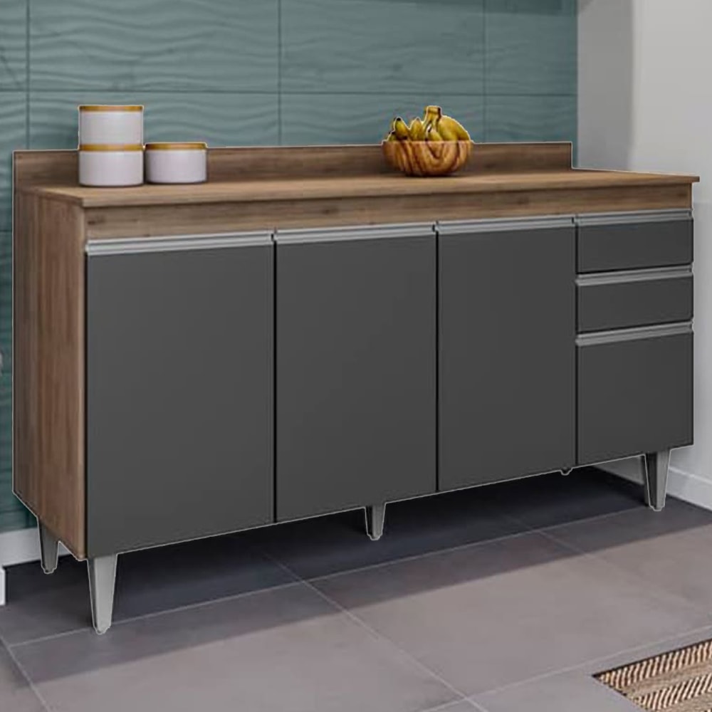 Balcao Com Tampo 4 Portas 2 Gavetas 160 cm BP Lorena Freijo Grafite Eratto Moveis