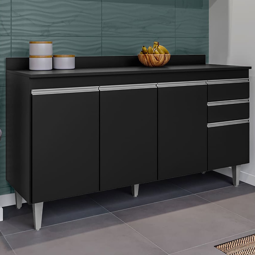 Balcao Com Tampo 4 Portas 2 Gavetas 160 cm BP Lorena Preto Eratto Moveis