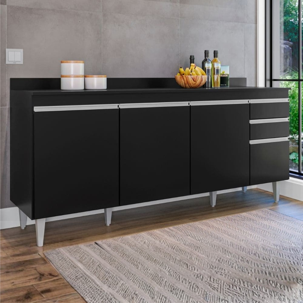 Balcao Com Tampo 4 Portas 2 Gavetas 180 cm BP Agatha Preto Eratto Moveis