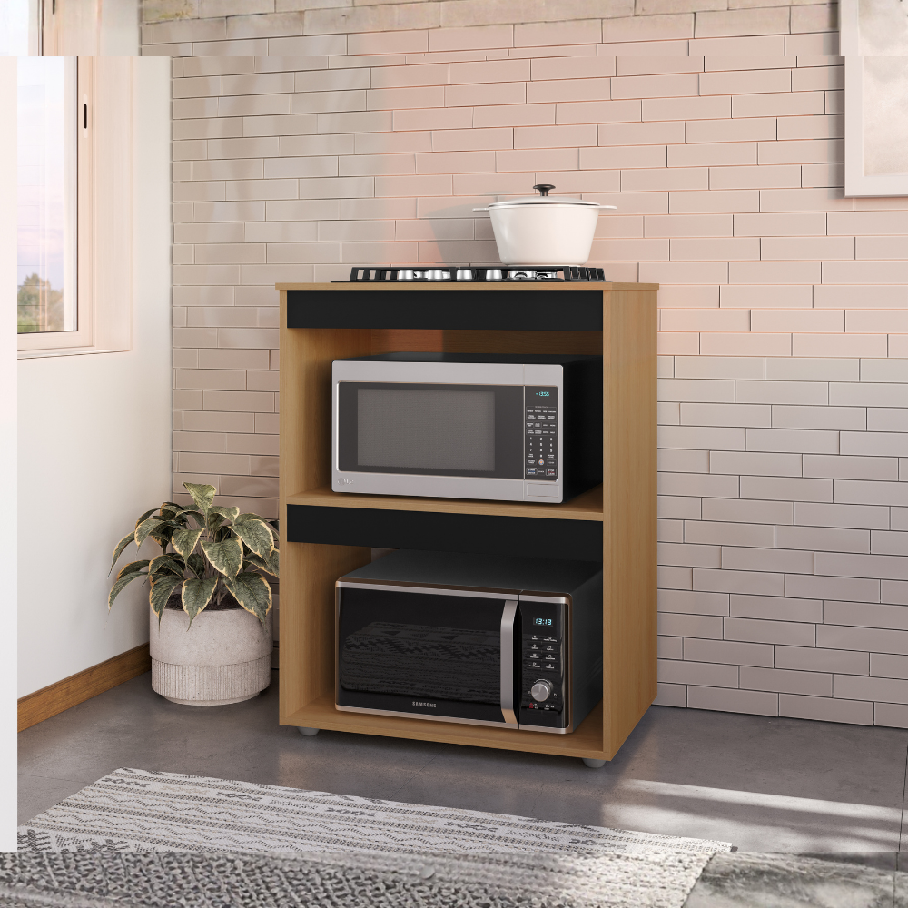Balcao Com Tampo Para Forno e Cooktop 75 cm Adriana Amendoa Preto REAJL