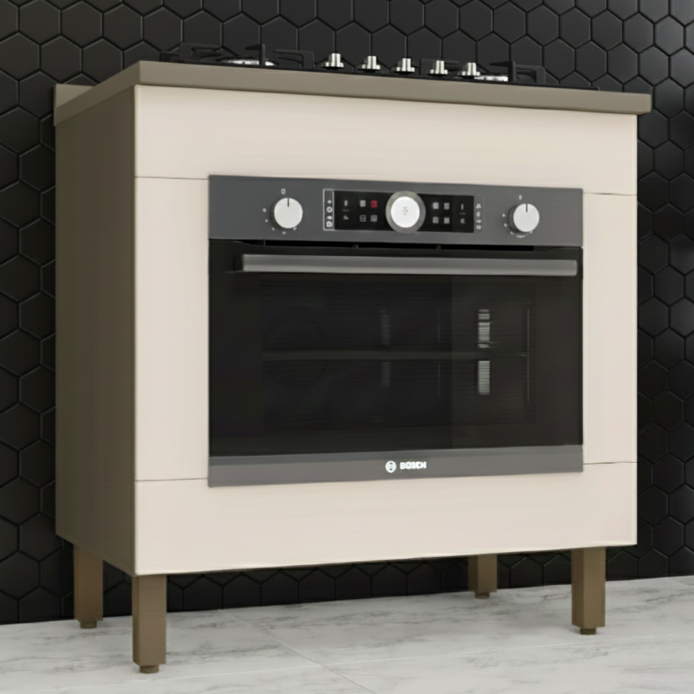 Balcão Forno de Embutir Tampo Para Cooktop 80 cm, ideal para quem busca funcionalidade e elegância para sua cozinha! Estrutura 100% MDF 15 mm (fundo 3 mm) com acabamento em pintura UV texturizada. Projetado para embutir forno com segurança, acompanha Tampo também em MDF (25 mm) usinado para cooktop de 4 bocas, com pré-marcação para cooktop de 5 bocas, além de pés em plástico com regulagem de altura. Produto será entregue em 02 volumes.