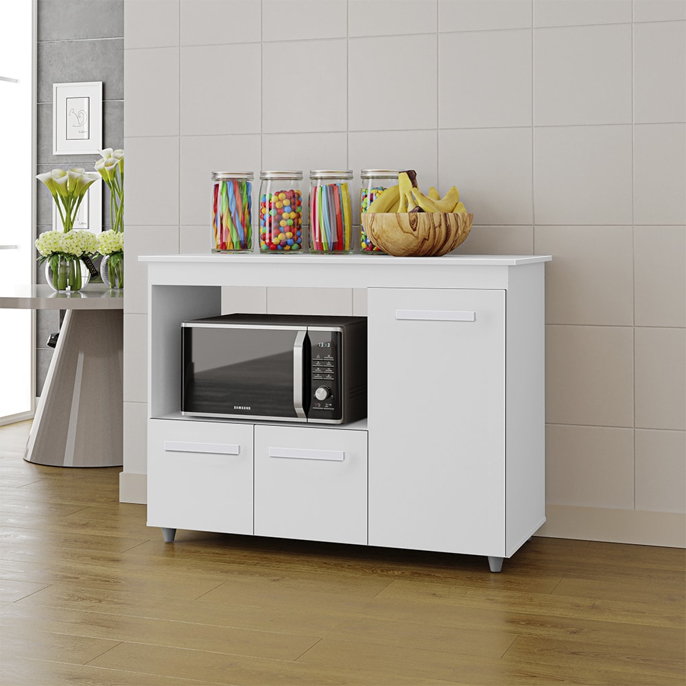 Balcão Multiuso 3 Portas Liza, é ideal para quem busca qualidade e sofisticação para compor sua cozinha da forma que desejar. Estrutura em MDP de 12 e 15 mm, acabamento em pintura UV. Composto por 03 portas articuladas com dobradiças metálicas, puxadores em plástico cromado, espaço para botijão de gás ou utensílios, nicho com espaço para forno ou microondas (68 x 38,5 cm), acompanham pés fixos que garantem a firmeza que o móvel precisa. Produzido com controle de qualidade e com excelente acabamento. Este móvel chegará em sua casa separado em 01 volume.
