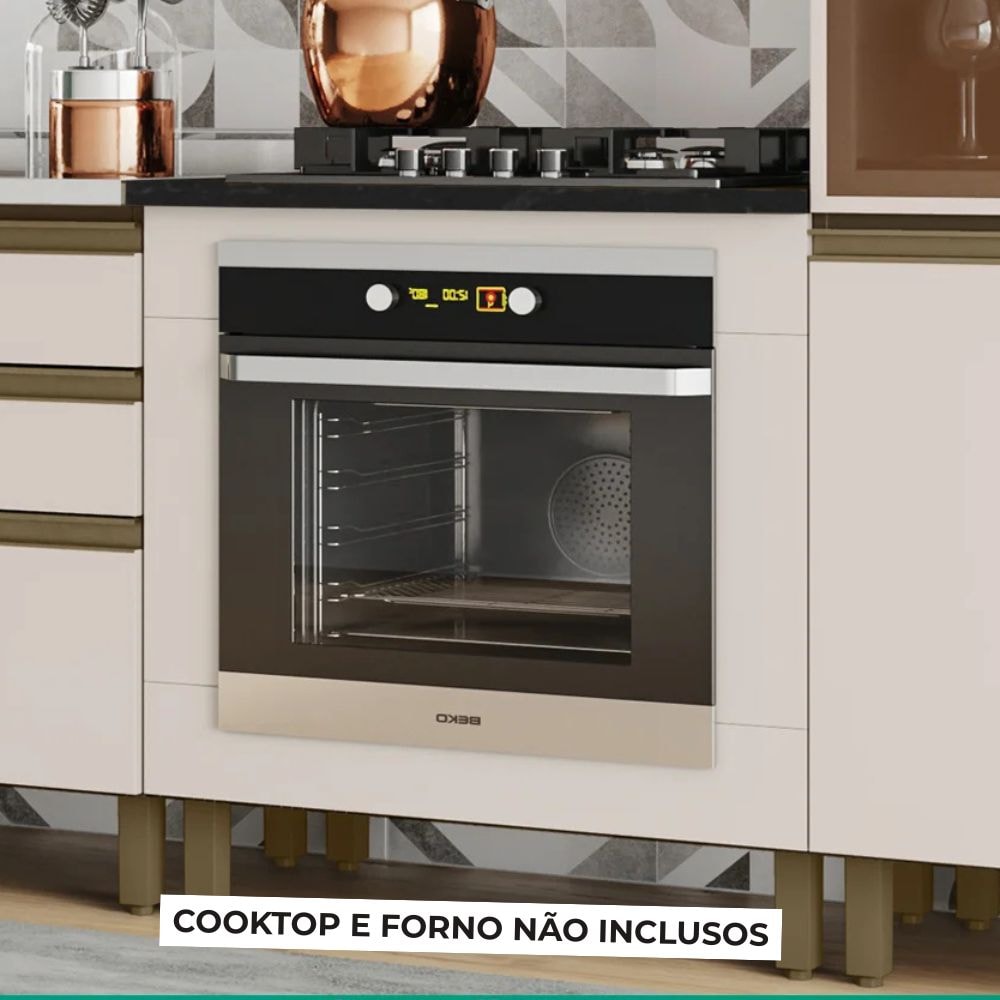 Funcionalidade e design moderno se unem no Balcão Para Embutir Forno Com Tampo. Produzido 100% em MDF de 3mm e 15 mm com acabamento em pintura UV. Possui espaço ideal para forno(de até A.41,4 cm x L.59cm x P.51cm), pés com regulagem de altura, tampo em MDF (25 mm) já incluso. Este produto será entregue em 02 volumes.