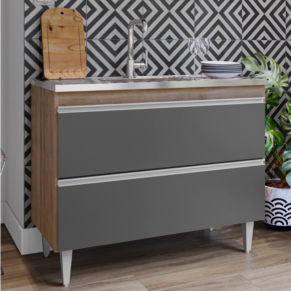Balcão Para Pia Esmeralda, ideal para compor sua cozinha com funcionalidade e eficiência! Estrutura em MDP 15 mm com acabamento BP. Composto por portas basculante com sistema fecho trava, com dobradiças metálicas, puxadores em perfil de alumínio e ampla prateleira interna. Acompanha também pés em plástico com regulagem de altura. TAMPO/PIA NÃO INCLUSO. Produto será entregue em 01 volume.