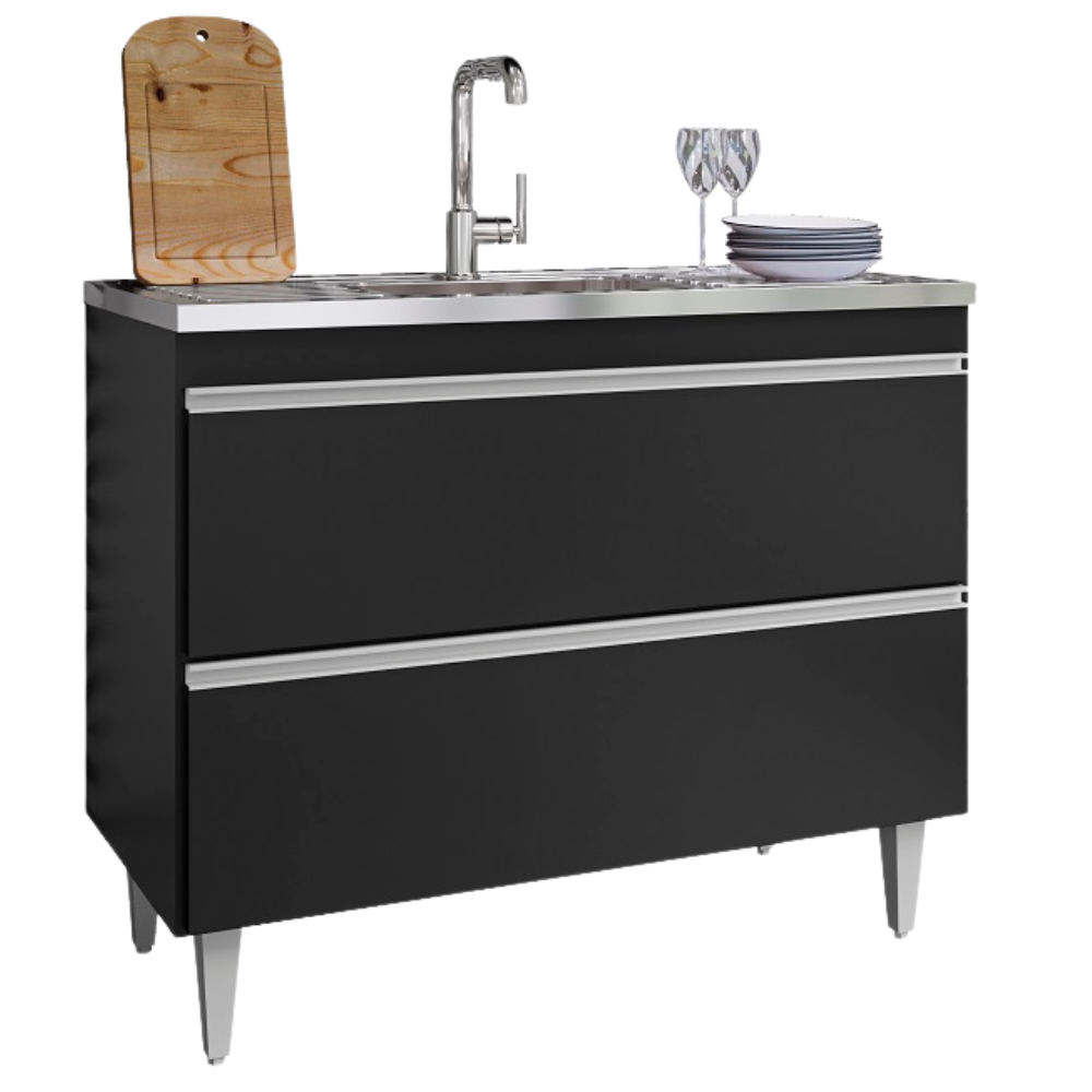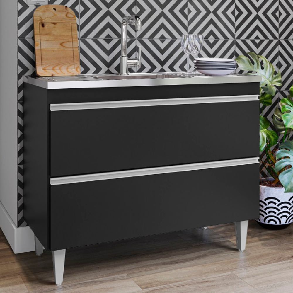 Balcao Para Pia 2 Portas Esmeralda 100 cm Preto Eratto Moveis