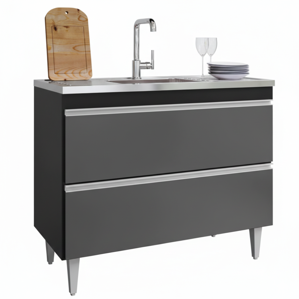 Balcão Para Pia Esmeralda, ideal para compor sua cozinha com funcionalidade e eficiência! Estrutura em MDP 15 mm com acabamento BP. Composto por portas basculante com sistema fecho trava, com dobradiças metálicas, puxadores em perfil de alumínio e ampla prateleira interna. Acompanha também pés em plástico com regulagem de altura. TAMPO/PIA NÃO INCLUSO. Produto será entregue em 01 volume.