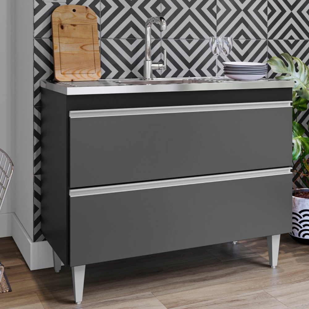 Balcao Para Pia 2 Portas Esmeralda 100 cm Preto Grafite Eratto Moveis