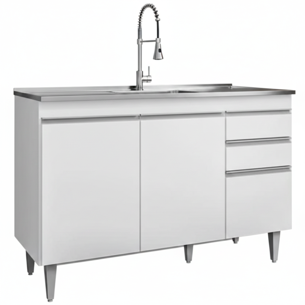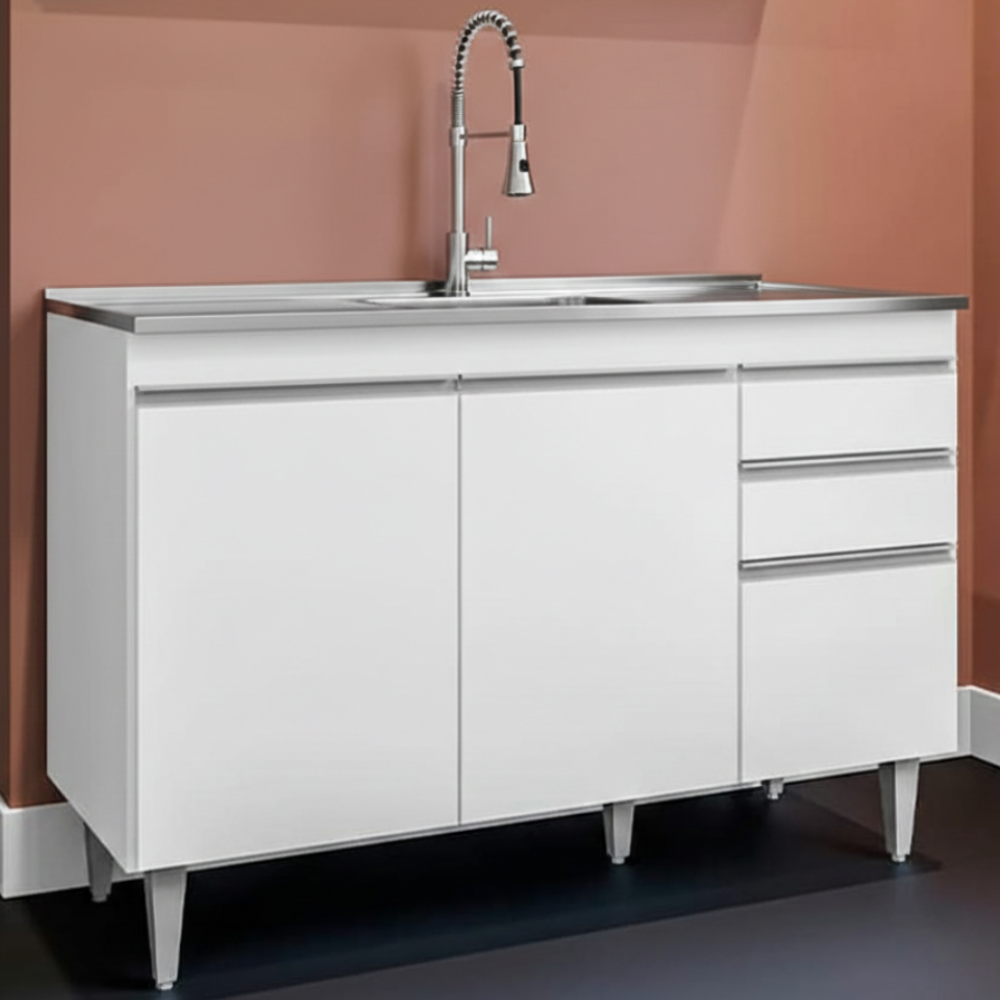 Balcao Para Pia 3 Portas 2 Gavetas 120 cm Melissa Branco Eratto Moveis