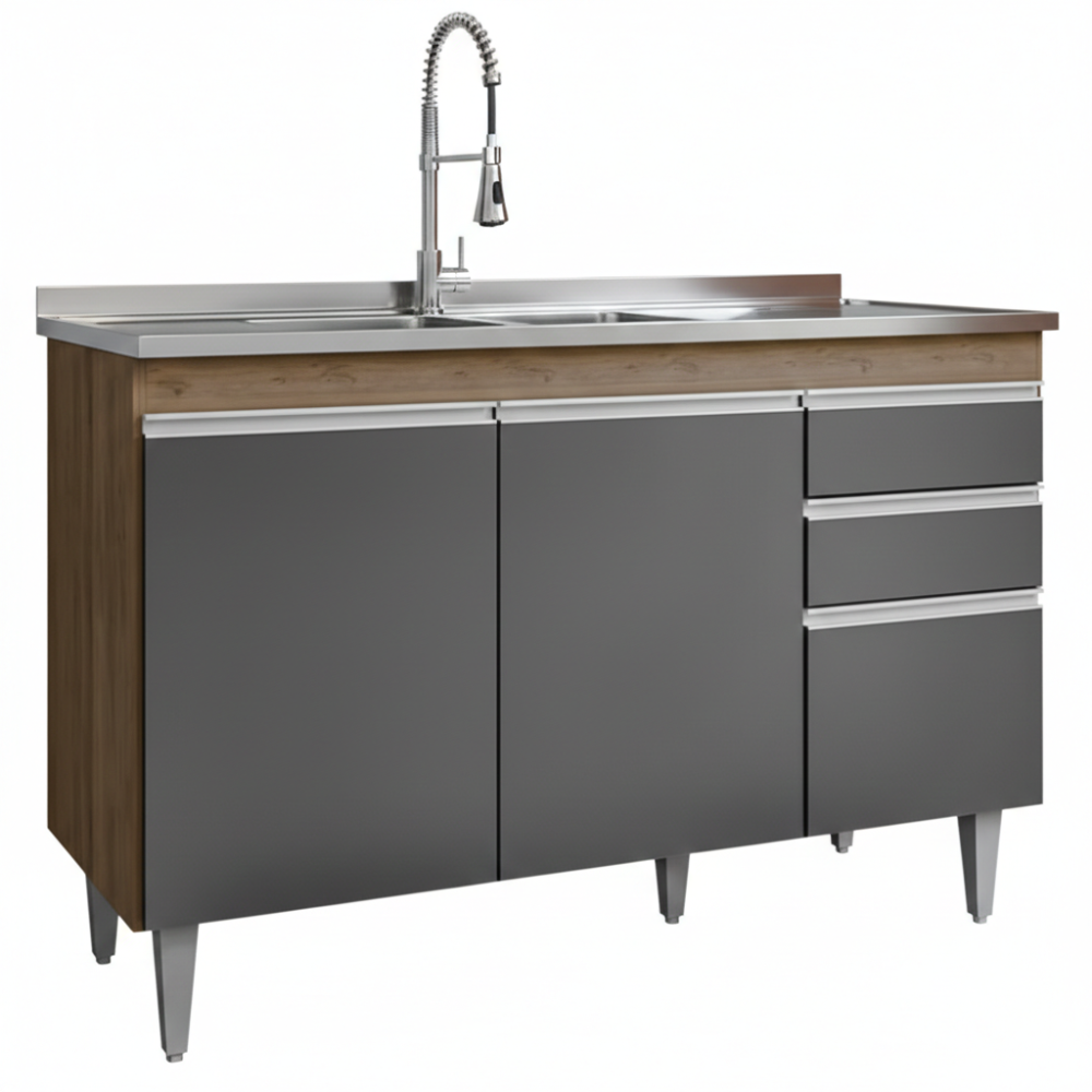 Balcao Para Pia 3 Portas 2 Gavetas Melissa 120 cm Freijo Grafite Eratto Moveis
