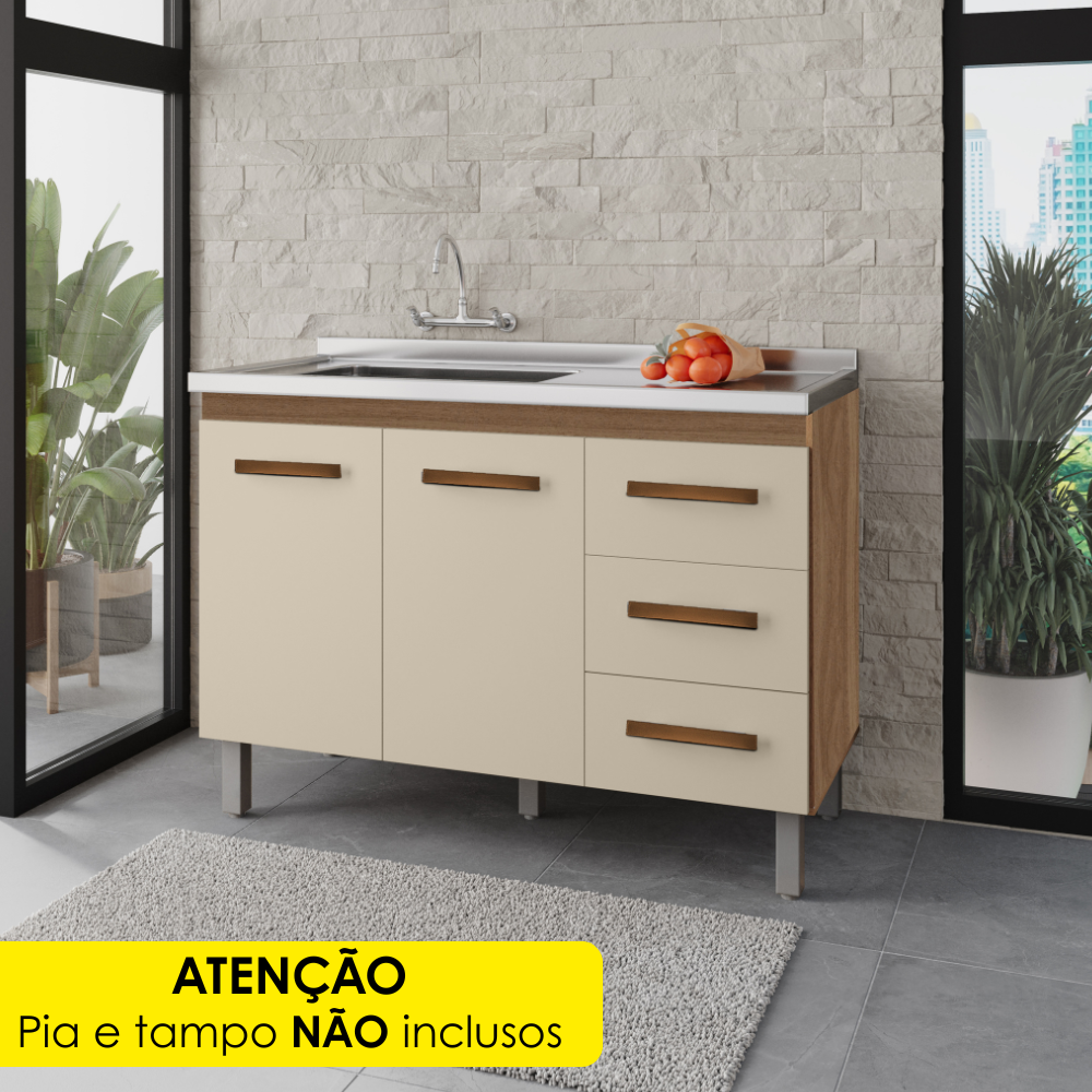 Balcao Para Pia 3G 2P 120 cm Bianca Savana Off White Mobbs