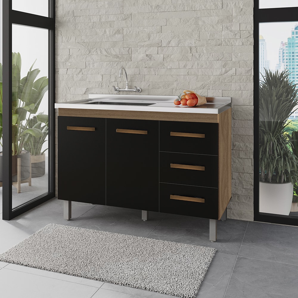 Balcão Para Pia Bianca, organização e praticidade para o seu dia a dia. Produzido em MDP (12/15 mm), com acabamento em pintura UV. Possui portas e gavetas equipadas com dobradiças e corrediças metálicas, prateleira interna, pés reguláveis e puxadores em plástico. NÃO ACOMPANHA PIA/TAMPO. Este produto será entregue em 01 volume.