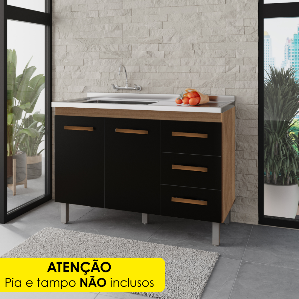 Balcão Para Pia Bianca, organização e praticidade para o seu dia a dia! Produzido em MDP (12/15 mm), com acabamento em pintura UV. Possui porta equipadas com dobradiças e gavetas com corrediças telescópicas, prateleira interna, pés reguláveis e puxadores em plástico. ATENÇÃO: NÃO ACOMPANHA PIA/TAMPO/TORNEIRA. Este produto será entregue em 01 volume.