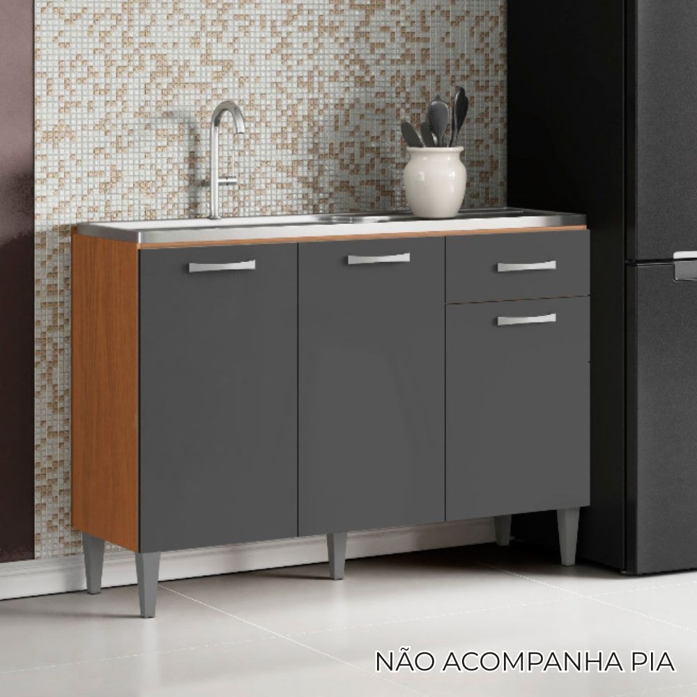 Balcao Para Pia 3P 1G 120 cm MDP Atenas Cinamomo Grafite ARMoveis