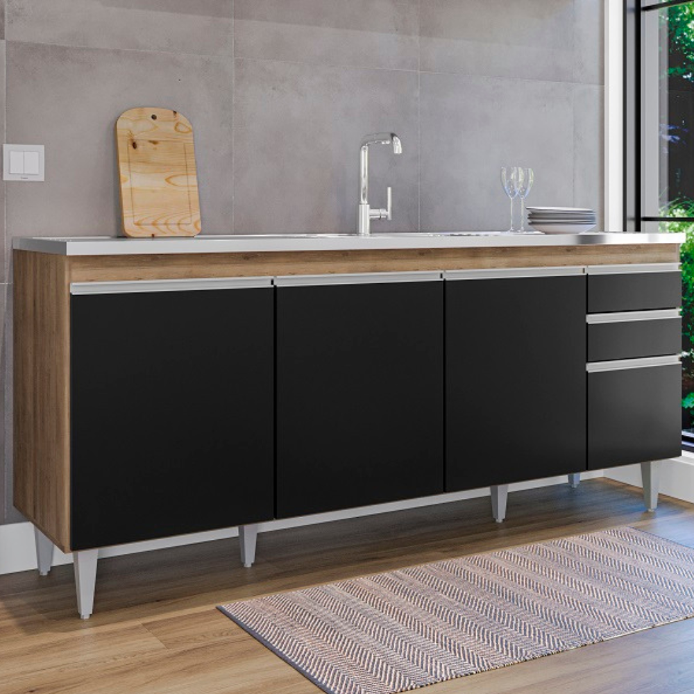 Balcao Para Pia 4 Portas 2 Gavetas 180 cm BP Agatha Freijo Preto Eratto Moveis
