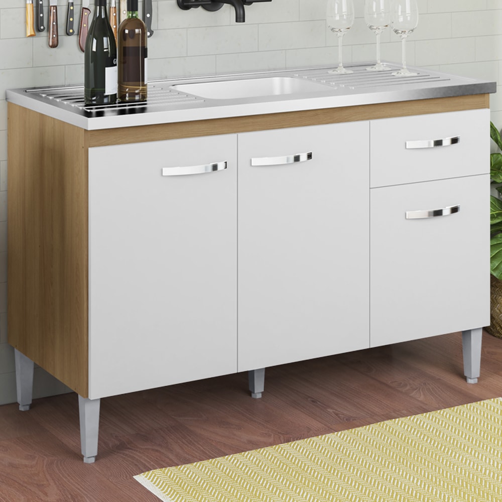 Balcão Para Pia Gabriela, funcional e compacto para seu dia a dia. Estrutura em MDP (12/ 15 mm - fundo 3 mm) com acabamento em pintura UV. Composto por porta e gaveta com dobradiças e corrediças metálicas, puxadores e pés em plástico com regulagem. PIA NÃO INCLUSA. Produto será entregue em 01 volume.