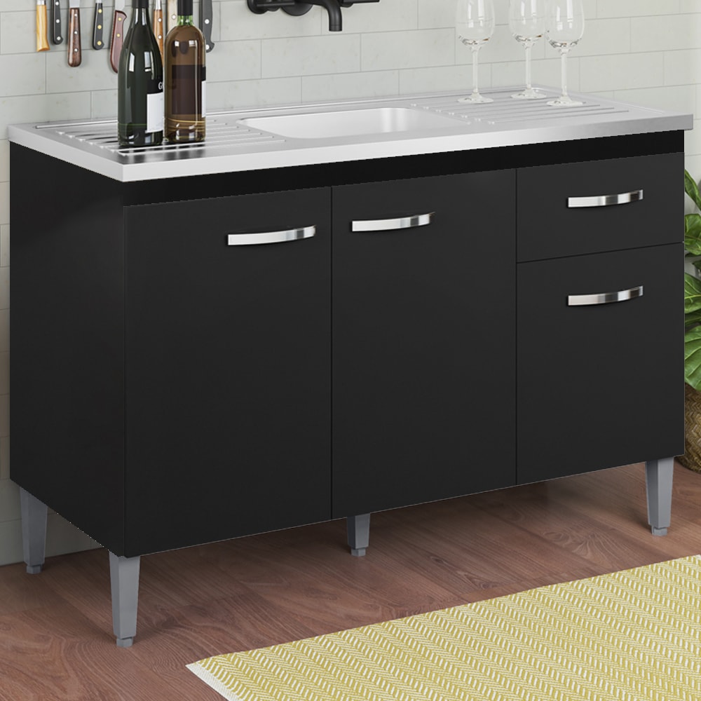 Balcao Para Pia Sem Tampo 118 cm Gabriela Preto REAJL Moveis