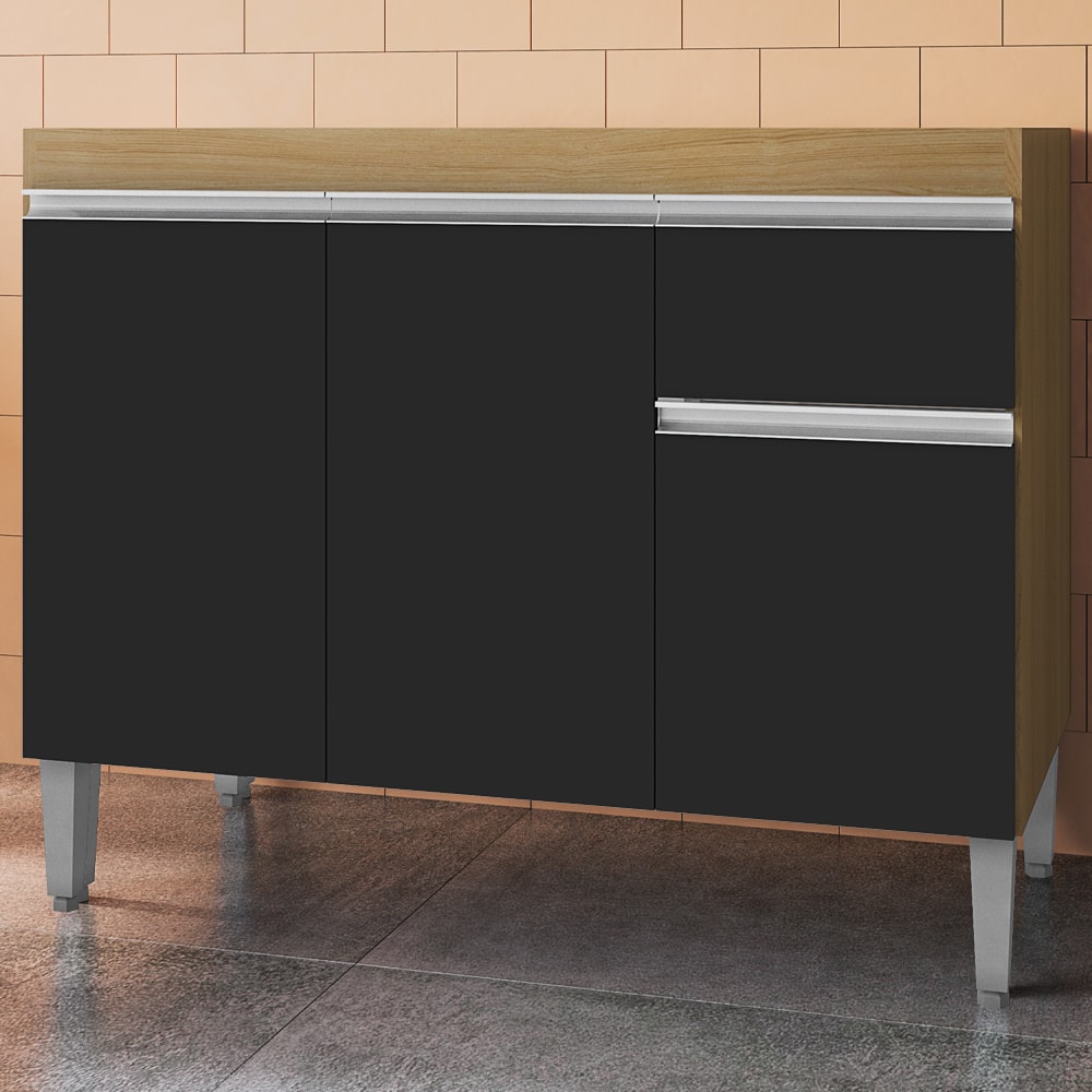 Balcão Para Pia Tatiane, compacto e funcional, ideal para seu dia a dia! Estrutura em MDP (12/ 15 mm - fundo 3 mm) com acabamento em pintura UV. Composto por portas com dobradiças metálicas, gaveta única com corrediça metálica, ampla prateleira interna, puxadores em alumínio e pés em plástico com regulagem. PIA / TAMPO NÃO INCLUSO. Produto será entregue em 01 volume.