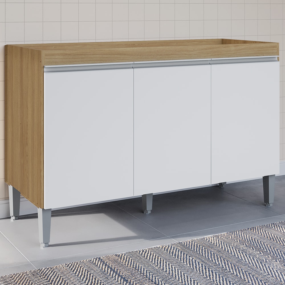 Balcao Para Pia Sem Tampo 120 cm Manu Amendoa Branco REAJL Moveis