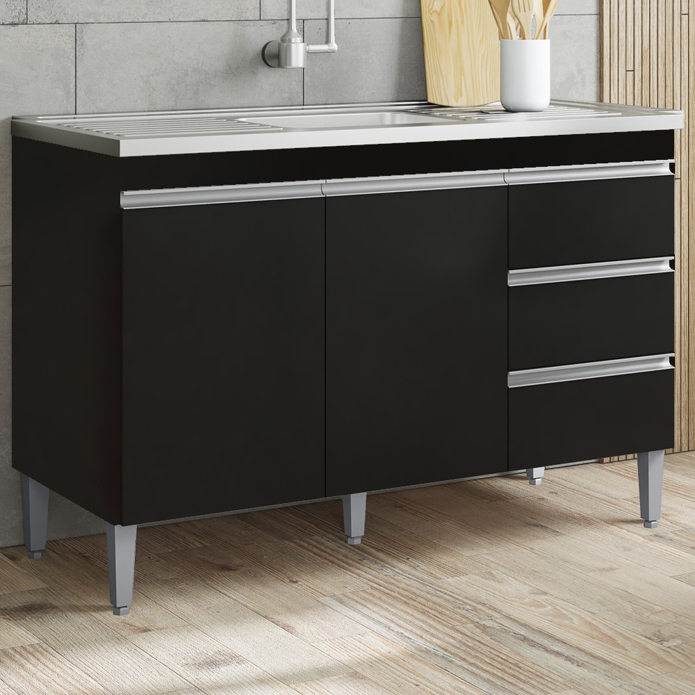 Balcao Pia Sem Tampo 2 PT 3 G 116 cm Andreia Preto REAJL Moveis