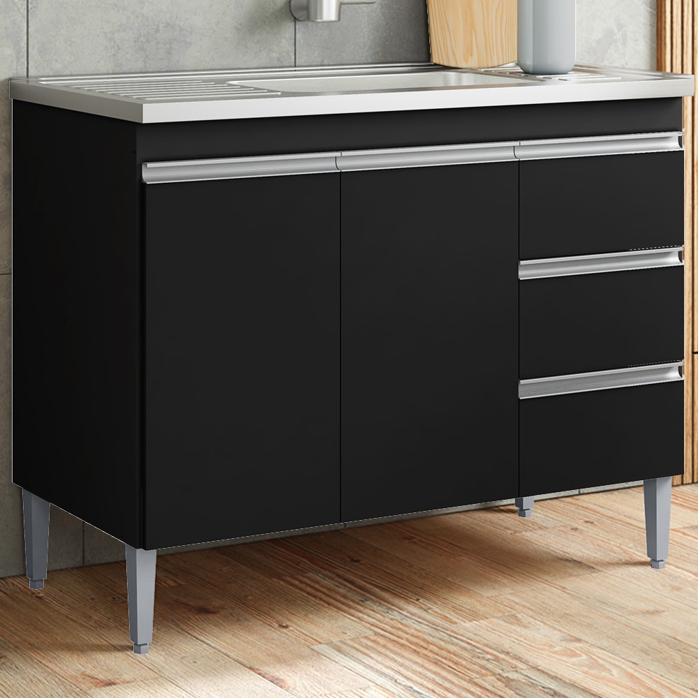 Balcão para Pia Andreia (sem tampo), compacto e funcional trazendo praticidade para seu dia a dia. Estrutura em MDP (12/ 15 mm - fundo 3 mm). Composto por portas e gavetas com dobradiças e corrediças metálicas, 1 prateleira interna e puxadores em alumínio. Pés em plástico com regulagem, garantindo estabilidade em qualquer piso. TAMPO/ PIA NÃO INCLUSO. Produto será entregue em 01 volume.