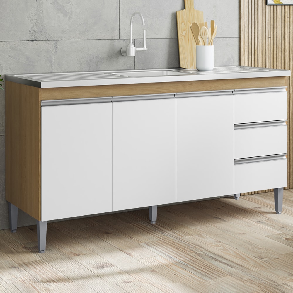 Balcao Pia Sem Tampo 3 PT 3 G 145 cm Andreia Amendoa Branco REAJL Moveis
