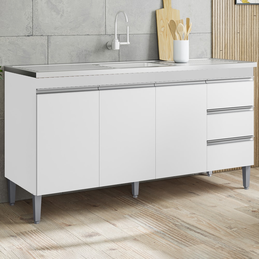 Balcao Pia Sem Tampo 3 PT 3 G 145 cm Andreia Branco REAJL Moveis
