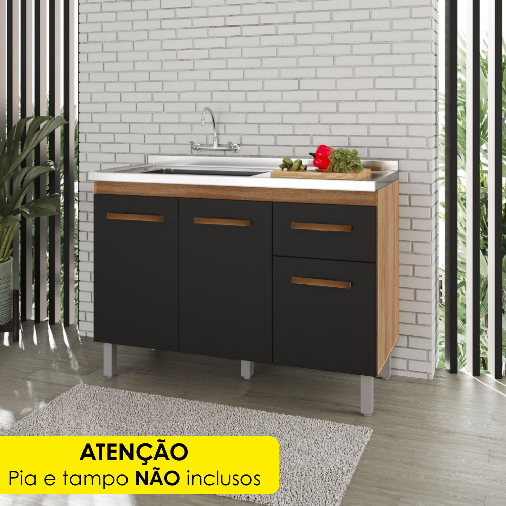 Balcão Para Pia Anita, compacto, funcional e moderno ideal para quem busca praticidade! Produzido em MDP (12/15 mm), com acabamento em pintura UV. Possui 3 portas equipadas com dobradiças metálicas e gaveta única com corrediça telescópica, prateleira interna, pés reguláveis e puxadores em plástico. ATENÇÃO: NÃO ACOMPANHA PIA/TAMPO/TORNEIRA. Este produto será entregue em 01 volume.
