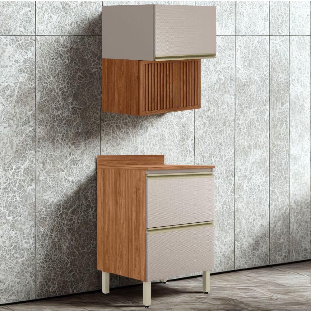 Balcao Tampo e Armario Aereo Ripado 60 cm Proenca Nogueira Nude Prime Demartez