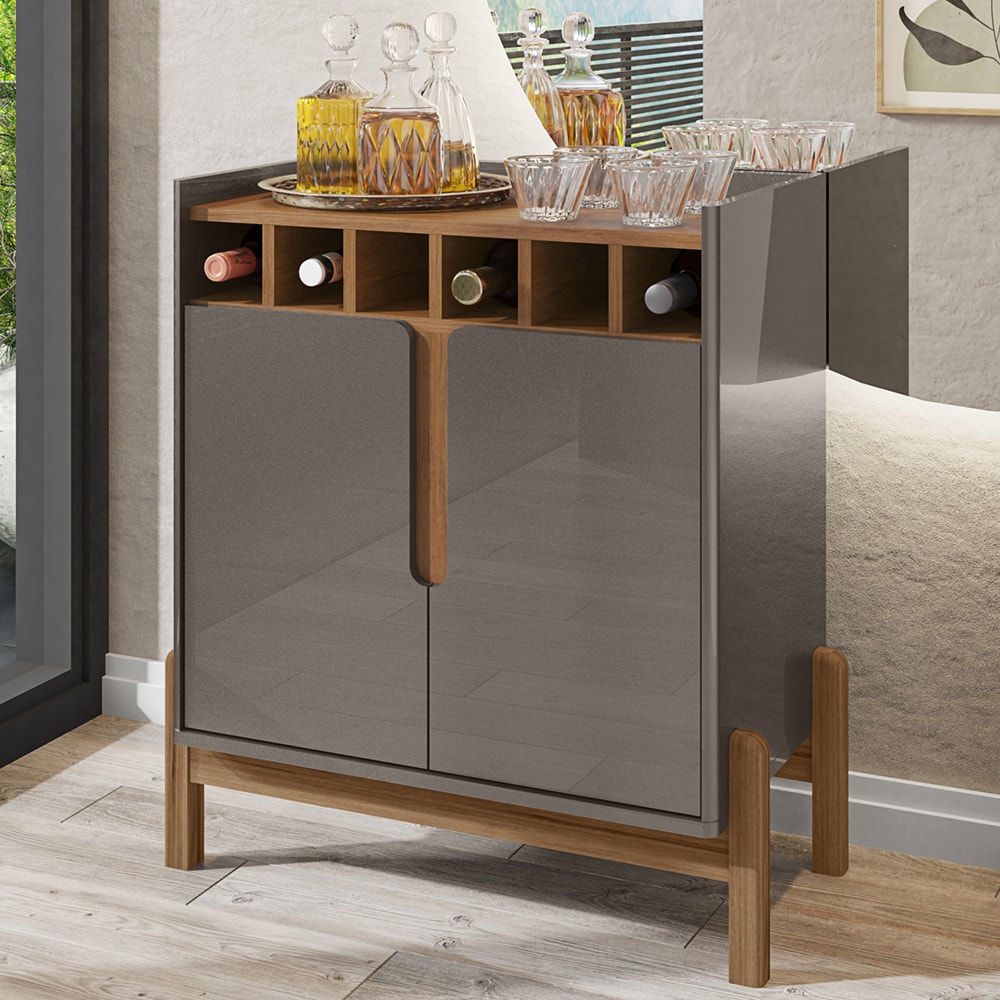 Barzinho Com 2 Portas e Adega Para Sala de Jantar 50522, com seu design moderno, irá levar versatilidade e charme à seu cômodo, seja ele, sala de jantar ou sala de estar. Possui estrutura em MDF de 15mm, MDP de 15mm e 25mm, 02 portas de MDF usinadas com detalhe curvo e dobradiças com sistema soft-close, para um fechamento mais suave, o que permite uma ótima experiência em seu uso diário, além disso, possui 06 adegas embutidas, para manter suas garrafas preferidas na posição horizontal, Sua pintura conta também com acabamento Print Wood, patenteado e exclusivo Casa D, garante ao produto maior qualidade e durabilidade como nenhuma no mercado possui. Suporta até 32 kg distribuídos, possibilitando a disposição de seus objetos, apesar de compacto, seu espaço interno e externo permitem armazenamento de diversos itens. Para maior segurança, os pés são elaborados em madeira maciça (Pinus) com pintura laqueada e sapatas para evitar riscos no piso no qual for instalado. Além de garantir um visual contemporâneo, tudo isso priorizando a segurança e o charme que seu ambiente necessita. Este móvel chegará em sua casa separado em 01 volume.