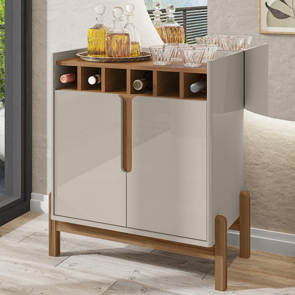 Barzinho Com 2 Portas e Adega Para Sala de Jantar 50522, com seu design moderno, irá levar versatilidade e charme à seu cômodo, seja ele, sala de jantar ou sala de estar. Possui estrutura em MDF de 15mm, MDP de 15mm e 25mm, 02 portas de MDF usinadas com detalhe curvo e dobradiças com sistema soft-close, para um fechamento mais suave, o que permite uma ótima experiência em seu uso diário, além disso, possui 06 adegas embutidas, para manter suas garrafas preferidas na posição horizontal, Sua pintura conta também com acabamento Print Wood, patenteado e exclusivo Casa D, garante ao produto maior qualidade e durabilidade como nenhuma no mercado possui. Suporta até 32 kg distribuídos, possibilitando a disposição de seus objetos, apesar de compacto, seu espaço interno e externo permitem armazenamento de diversos itens. Para maior segurança, os pés são elaborados em madeira maciça (Pinus) com pintura laqueada e sapatas para evitar riscos no piso no qual for instalado. Além de garantir um visual contemporâneo, tudo isso priorizando a segurança e o charme que seu ambiente necessita. Este móvel chegará em sua casa separado em 01 volume.