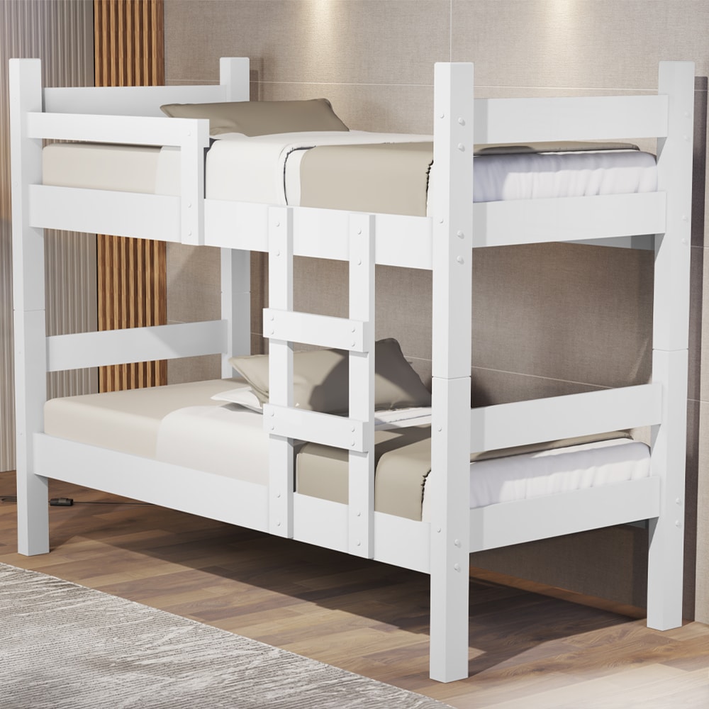Beliche Leticia, ergonômica e adaptável, criada para oferecer conforto e se ajustar a você! Estrutura 100% MDF de (12/15/25 mm) e acabamento UV. Composta por design moderno com cantos retos, escada fixa para maior apoio, grades de segurança e pés em MDF 25mm para maior estabilidade. Seu destaque fica para sua montagem flex (podendo se transformar em duas camas de solteiro) sendo ideal e indicada para colchões de 188X88 cm (COLCHÃO NÃO INCLUSO), suportando até 90 kg por cama. Este produto será entregue em 2 volumes.