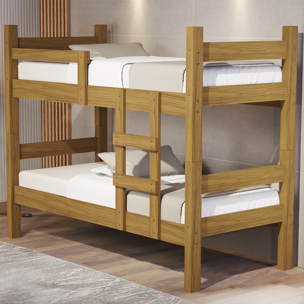 Beliche Leticia, ergonômica e adaptável, criada para oferecer conforto e se ajustar a você! Estrutura 100% MDF de (12/15/25 mm) e acabamento UV. Composta por design moderno com cantos retos, escada fixa para maior apoio, grades de segurança e pés em MDF 25mm para maior estabilidade. Seu destaque fica para sua montagem flex (podendo se transformar em duas camas de solteiro) sendo ideal e indicada para colchões de 188X88 cm (COLCHÃO NÃO INCLUSO), suportando até 90 kg por cama. Este produto será entregue em 2 volumes.